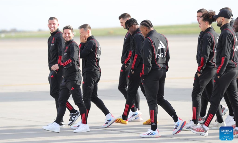 Players of Team Belgium are seen at the Brussels Airport in Zaventem, Belgium, Nov. 15, 2022. Team Belgium started their journey to the Middle East as they prepare for the upcoming Qatar 2022 World Cup. (Xinhua/Zheng Huansong)