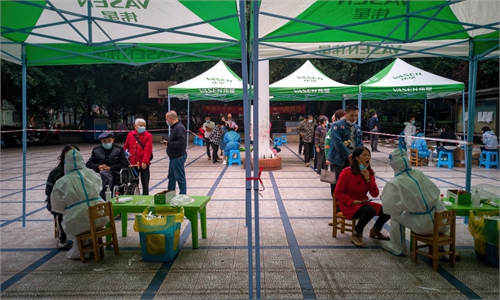 Residents line up to undergo nucleic acid testing in Zhengzhou, Central China's Henan Province on November 23, 2022. Photo: IC
