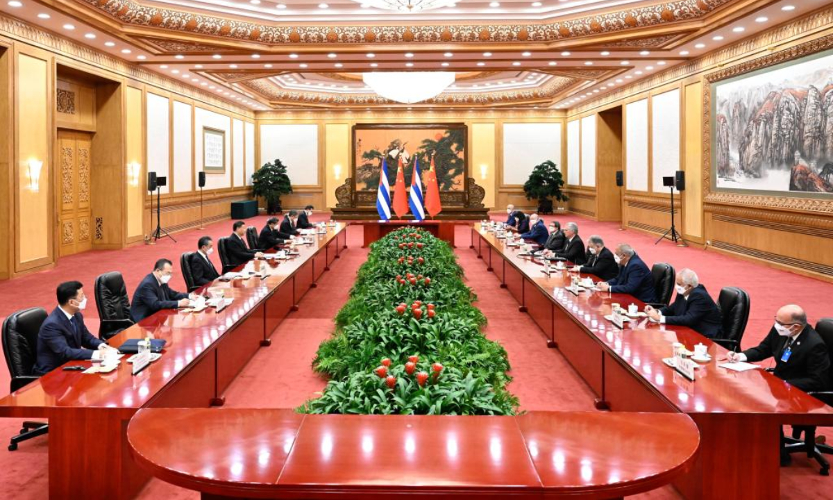 Xi, general secretary of the Communist Party of China (CPC) Central Committee and Chinese president, said to Diaz-Canel, first secretary of the Central Committee of the Communist Party of Cuba and Cuban president, that Diaz-Canel is the first Latin American and Caribbean head of state received by China since the 20th CPC National Congress held last month, which fully demonstrates the special friendship between the two countries and parties.
