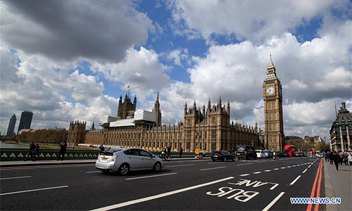 Photo taken on April 27, 2016 shows the Big Ben in central London, Britain. London's famous Big Ben will chime for the last time on Monday (Aug. 21) when the famous Great Bell falls silent until 2021. (Xinhua/Han Yan)