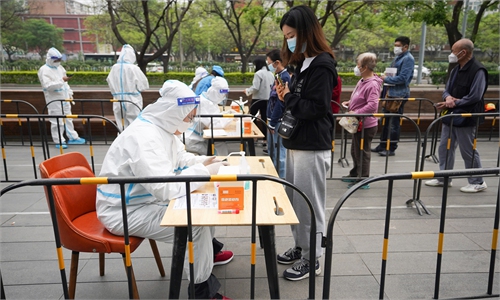 Residents in Beijing line to take nucleic acid tests on November 15, 2022. Photo: VCG