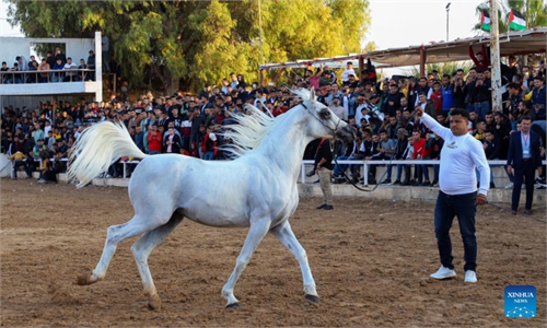 A relative of Palestinian Osama Soboh grieves during his funeral in Burqin village west of the West Bank city of Jenin, on Sept. 26, 2021. Palestine on Sunday condemned Israeli soldiers for killing five Palestinians in two separate incidents in northern West Bank and northwest of Jerusalem.(Photo: Xinhua)