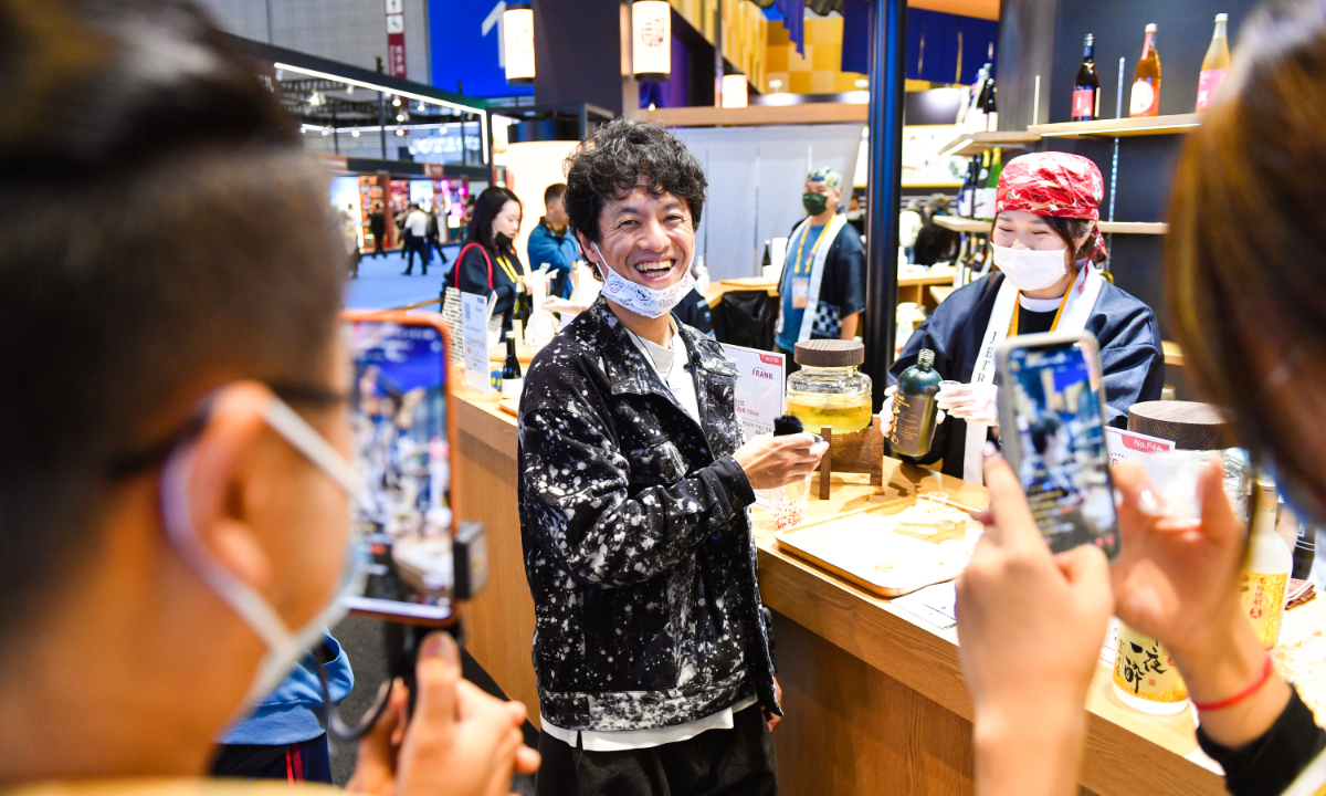 Ryo Takeuchi livestreams at the Japan pavilion of the China International Import?Expo (CIIE) 2021 in Shanghai. Photo: VCG