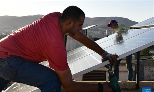 French President Emmanuel Macron talks with workers on board a boat during a visit at the Saint-Nazaire offshore wind farm, off the coast of the Guerande peninsula in western France, on September 22, 2022. Europe is facing an energy crunch due to the US-instigated Russia-Ukraine conflict, with surging gas and electricity prices. Photo: VCG