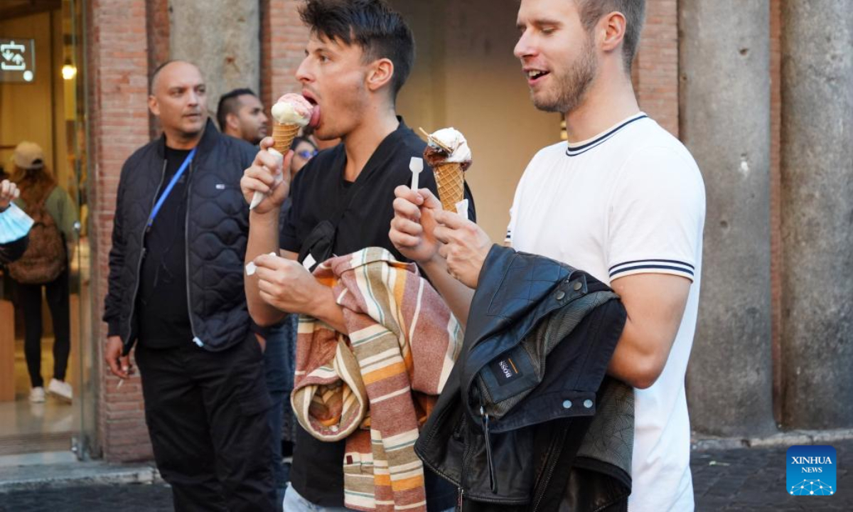 People eat ice cream in Rome, Italy, Nov 11, 2022. Large swathes of northern Italy have this year experienced the hottest October since records began in 1800, Italy's National Research Council said Tuesday. Photo:Xinhua