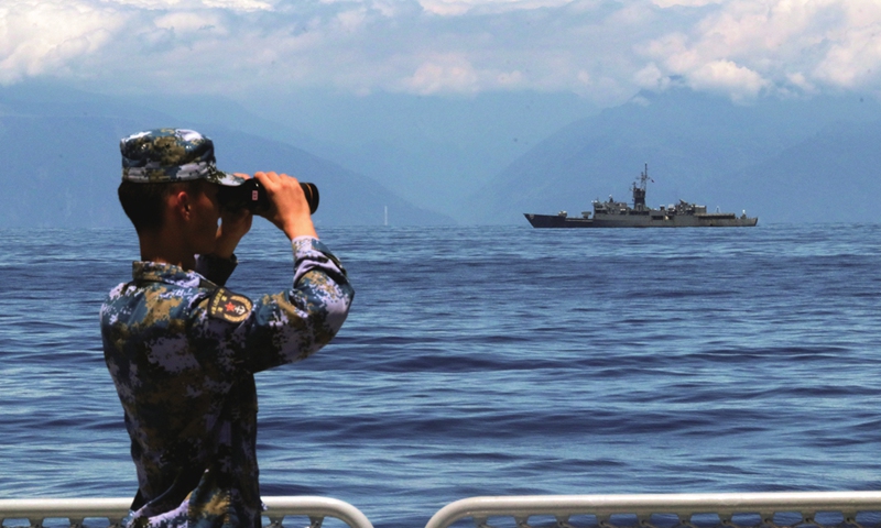 A PLA soldier looks around with a telescope on August 5, 2022, as the Navy of the PLA Eastern Theater Command continues drills the waters around the island of Taiwan. Photo: Xinhua