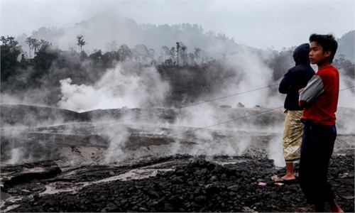 People inspect the affected area after the eruption of Mount Semeru at Sapiturang village in Lumajang, East Java, Indonesia on Dec. 4, 2022. (Photo by Bayu Novanta/Xinhua)