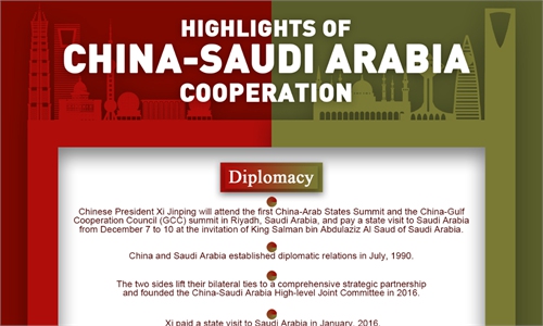 New peak for win-win cooperationIn recent years, Saudi Arabia has vigorously promoted economic diversification and transformation under the framework of Saudi Vision 2030. Wang told the Global Times that frequent high-level interactions between China and Saudi Arabia have strengthened the mutual trust between the two countries and could help Chinese firms to participate in local projects more smoothly. He expects the two governments could reach more cooperation intentions during Xi's visit, especially in areas such as smart city construction, green energy, energy conservation and environmental protection, in which Chinese enterprises are greatly interested.