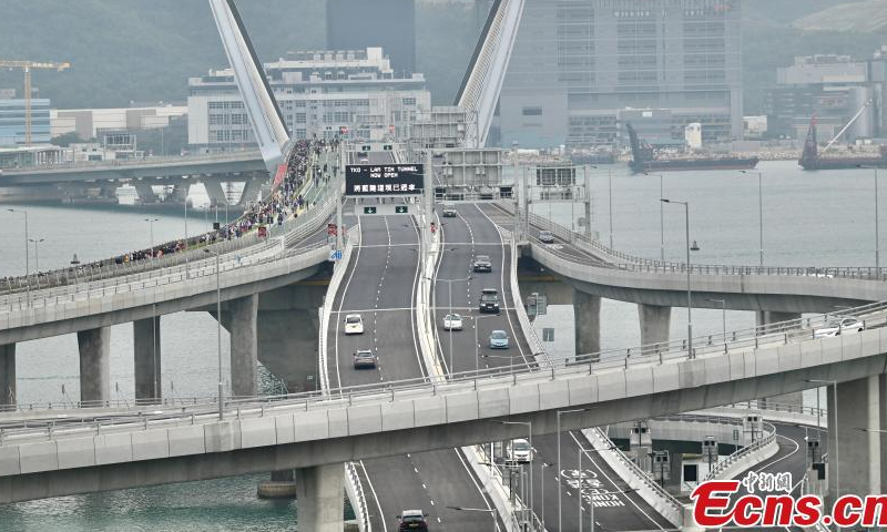 Photo shows the Tseung Kwan O Cross Bay Bridge in south China's Hong Kong Special Administrative Region, Dec. 11, 2022. (Photo: China News Service/Li Zhihua) As an important cross-sea corridor at the Junk Bay in southeastern New Territories of Hong Kong, the Tseung Kwan O Cross Bay Bridge, the main project of the Cross Bay Link, opened to traffic on Sunday.