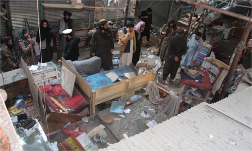 Security personnel examine a truck at a blast site in southwest Pakistan's Quetta on Nov. 30, 2022. A suicide blast hit a police truck on Wednesday in Quetta, the provincial capital of Pakistan's southwest Balochistan province, killing two people and leaving 24 others injured, a police official told Xinhua.(Photo: Xinhua)