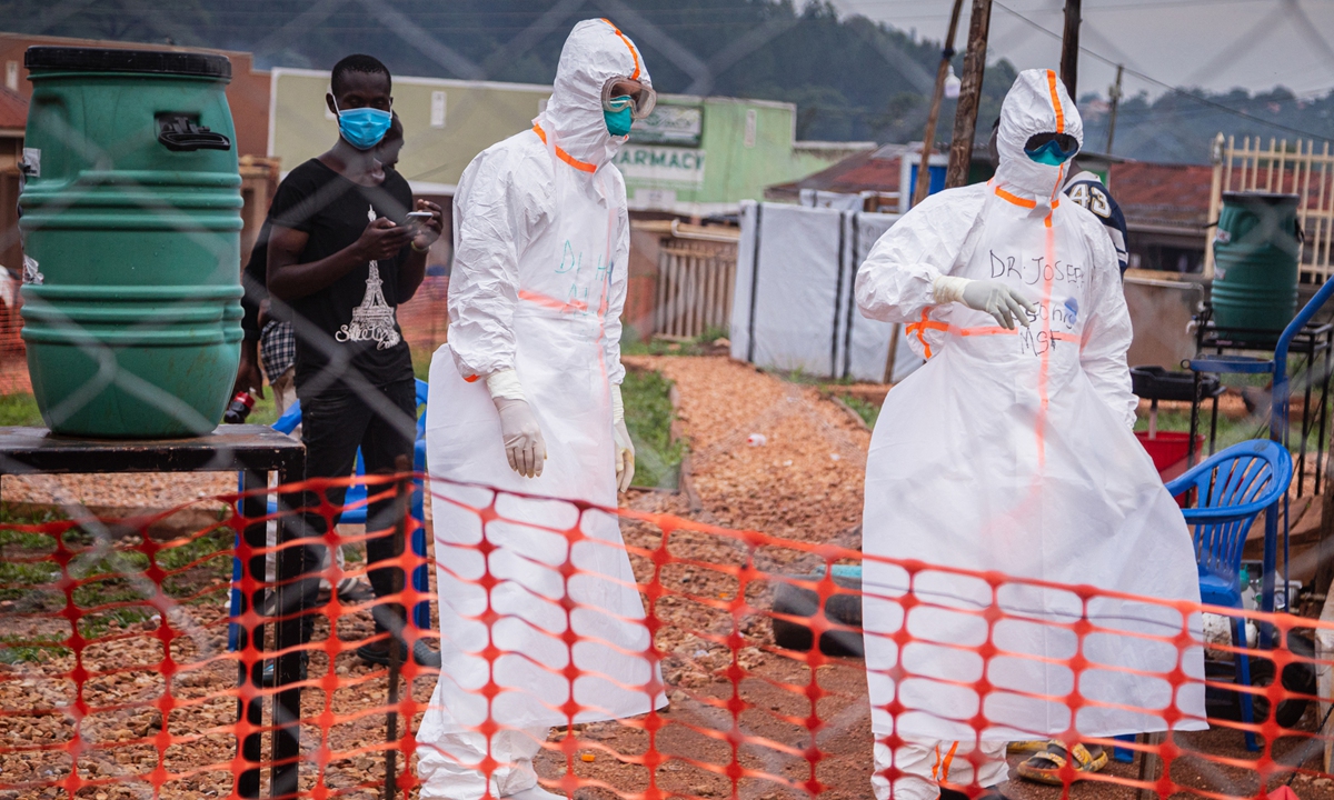 Doctors work inside an isolation center in Mubende, Uganda in late October. Photo: AFP