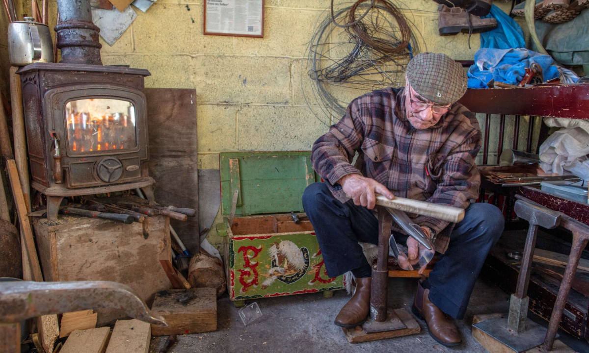 Warmed by a wood-burning stove and thinking of the past, James Collins often works with tin late into the evening, the passing of time punctuated by the steady tap of his hammer.