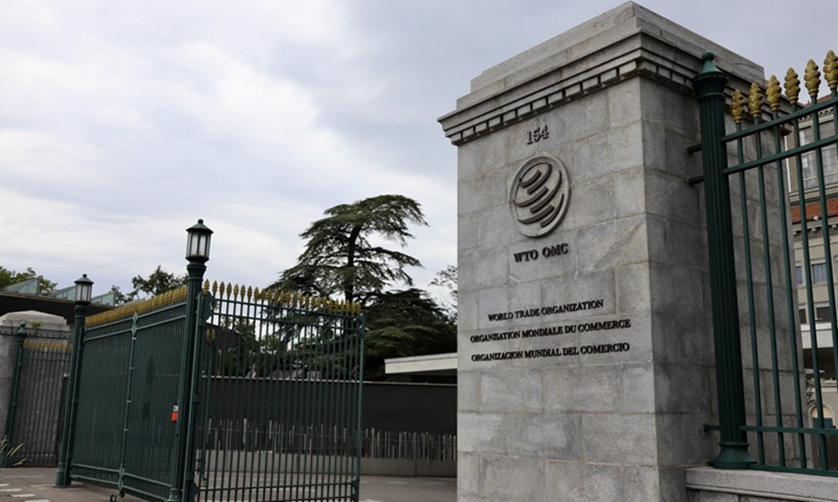 A sign of the WTO on its headquarters in Geneva Photo: VCG