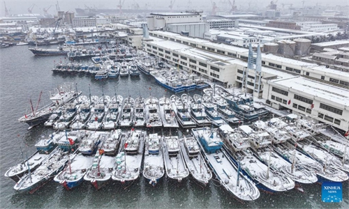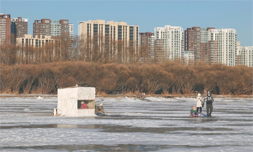 Residents are busy catching fish in Chagan Lake of Northeast China's Jilin Province on December 26, 2022, as winter fishing began. This year's winter fishing season in Chagan Lake will last until February 2023, and the total catch is expected to reach 1,500 tons.Photo: VCG