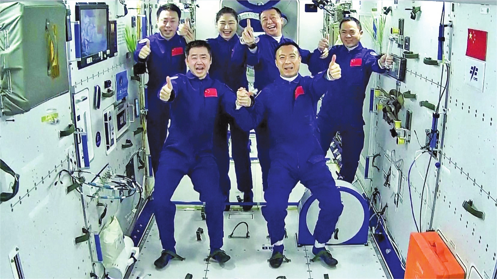 It was a dream-fulfilling moment - six taikonauts embracing each other and taking a group photo for the first time at China's space station.
