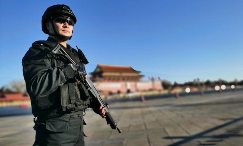 A special police is on guard in Beijing, capital of China, January 10, 2021. Photo: Xinhua