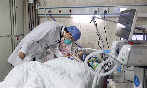 Doctors at Tongji Hospital affiliated to Tongji University check on an emergency patient in Shanghai on December 26, 2022. Photo: IC