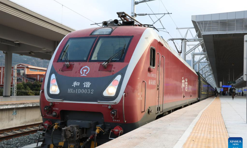 The train T8010 is seen at Quanzhou railway station in Quanzhou, southeast China's Fujian Province, Dec. 30, 2022. The 464-km railway linking Xingguo in east China's Jiangxi Province and Quanzhou in southeast China's Fujian Province, started operation on Friday. The designed speed of the line is 160 km/h. Photo: Xinhua