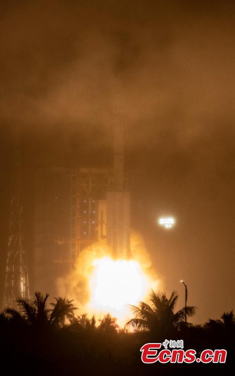A modified version of the Long March 7 carrier rocket carrying Shijian-23, Shiyan-22A and Shiyan-22B satellites blasts off from the Wenchang Spacecraft Launch Site in south China's Hainan Province, Jan. 9, 2023. (Photo: China News Service/Luo Yunfei)