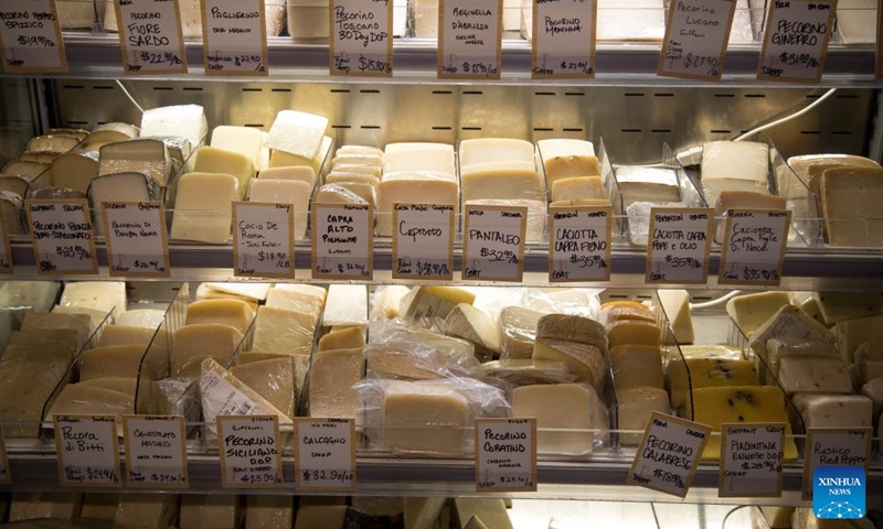 Cheese is displayed at Eataly NYC Downtown in New York, the United States, on March 10, 2022. US consumer inflation in February continued to rise at the fastest annual pace in 40 years, the US Labor Department reported on Thursday.