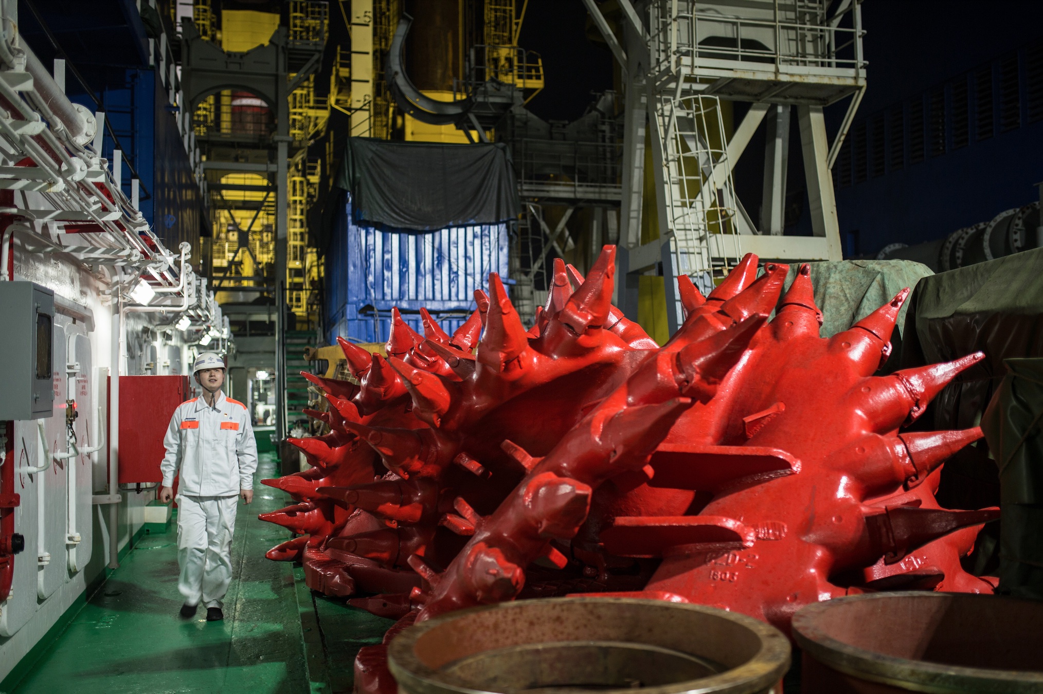 Tianjing can discharge the mixture of sea sand and seawater at a distance of up to 6,000 meters at a rate of 4,500 cubic meters per hour, and the sea sand to be loaded can reach more than 100,000 cubic meters per day. It is also equipped with the most powerful excavation system in Asia, with a reamer power of 4,200 kilowatts to avoid damage from coral reefs, which would affect work output.