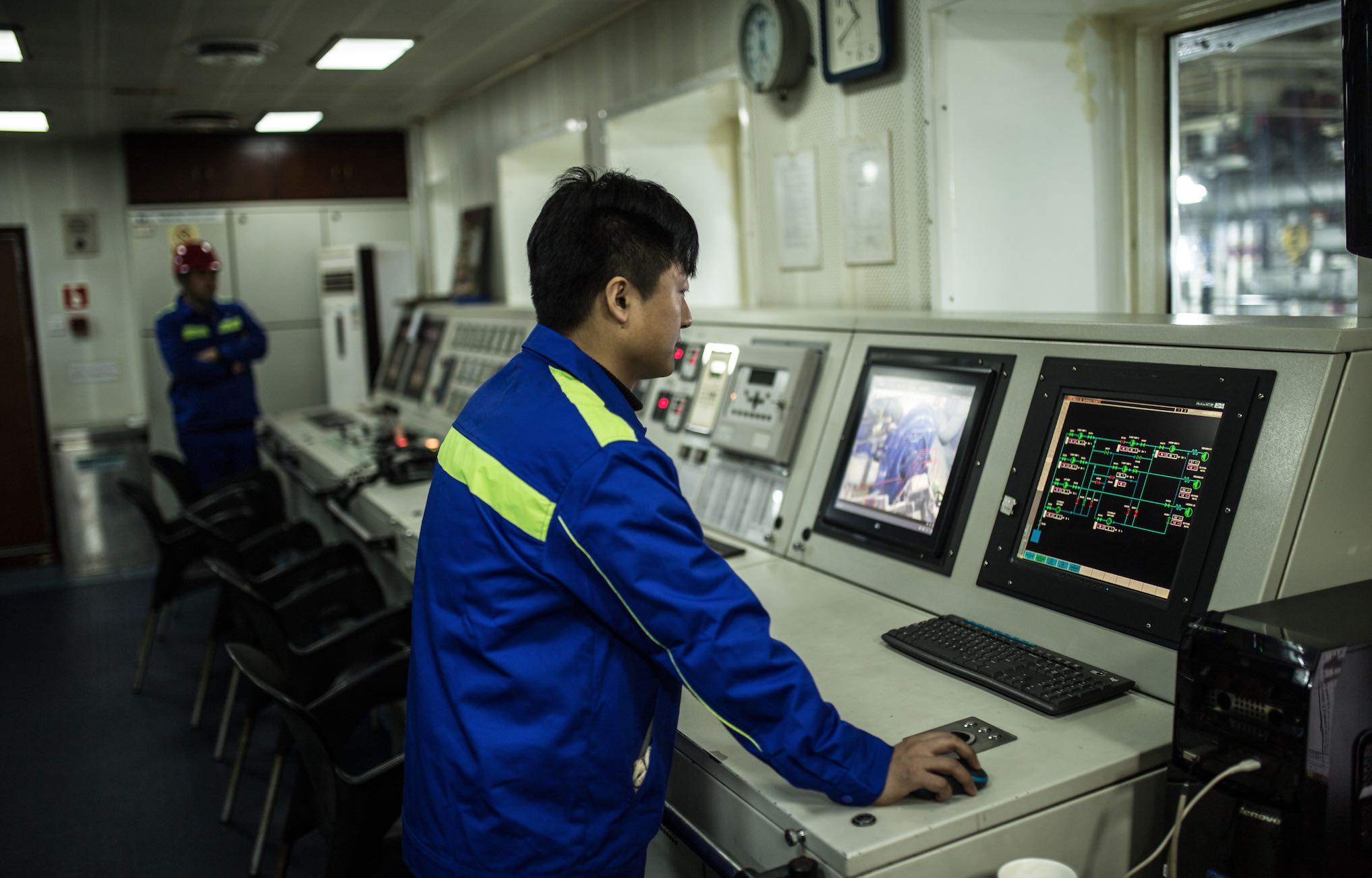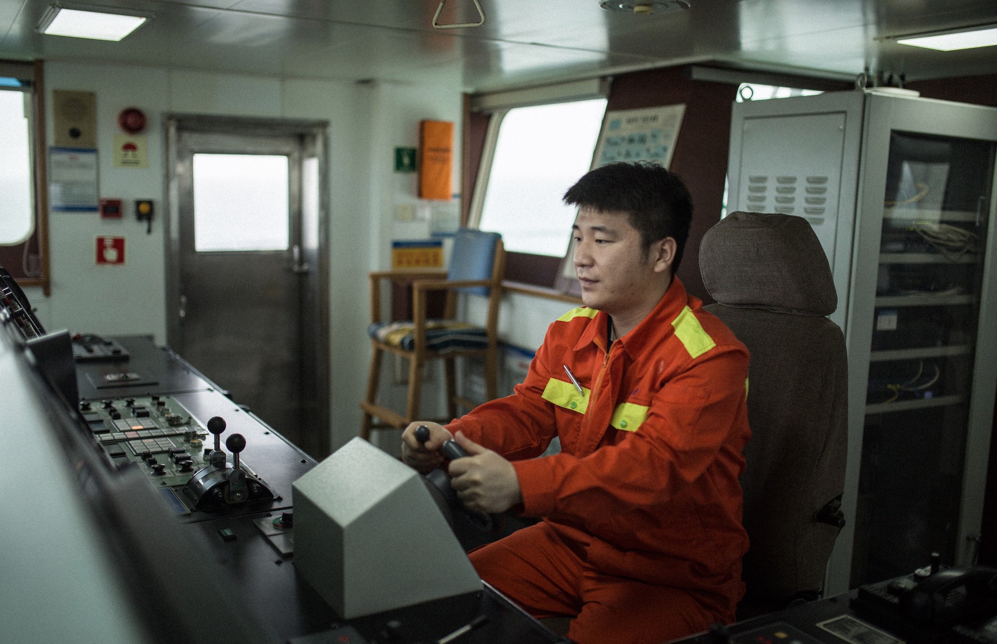 Tianjing cabin, Ran was focused on dredging system operation modulation. On his "throne" directly in the front of the bridge, with his arms spread out, his hands constantly adjusted and tweaked systems on the consoles on both sides of him. With a panoramic view to boot, Ran could also assess the external working conditions for the