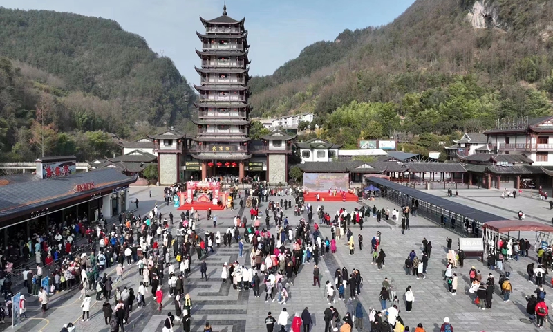 Tourists outside Wulingyuan scenic spot in Zhangjiajie, Central China's Hunan Province on January 24, 2023 Photo: Courtesy of Zhangjiajie tourism bureau