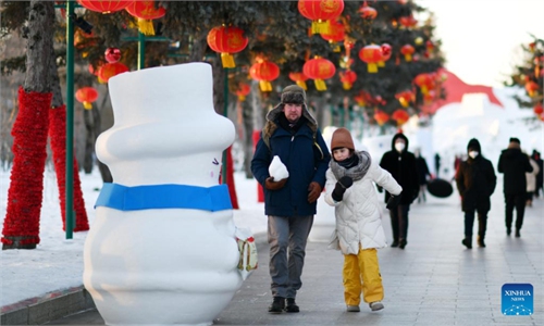 Residents enjoy themselves on the last day of Chinese New Year holidays as a rare landscape hard rime appears along the Songhua River in Jilin, Northeast China's Jilin Province on January 27, 2023. Photo: CFP