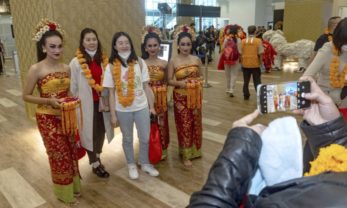 A welcome ceremony was held at the airport by the Indonesian tourism ministry and the Bali provincial government to greet the Chinese tourists.