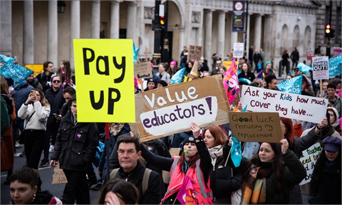 National Education Union members and Education workers rally towards Westminster during a day of strikes across the UK, on February 1, 2023 in London, United Kingdom. Photo: AFP