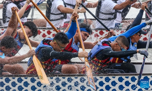 Competitors practice for an ice dragon boat race on February 2, 2023 in Jilin, Northeast China's Jilin Province. A total of 500 competitors from around the country including Beijing and Wenzhou, East China's Zhejiang Province, will take part in the race on February 4, 2023. Photo: VCG