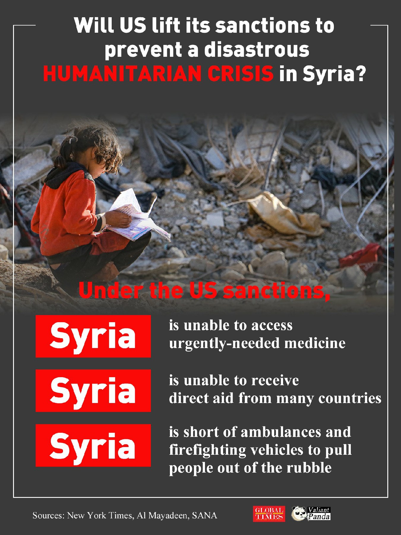 Will US lift its sanctions to prevent a disastrous humanitarian crisis in Syria? Graphic:GT