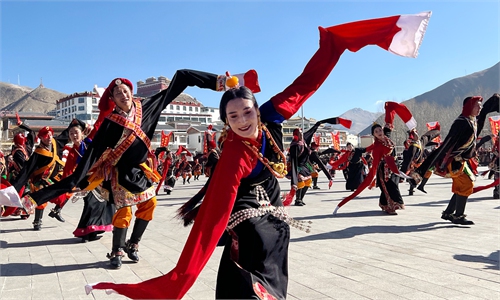 Traditional ethnic dance to the celebrate Tibetan New Year Photo: VCG
