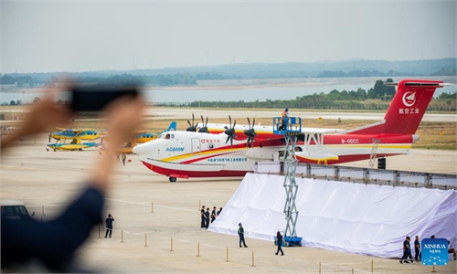 The fourth AG600M airplane, which is of the firefighting variant in China's indigenously developed AG600 large amphibious aircraft family, has successfully conducted a flight test in Zhuhai, South China's Guangdong Province, the Global Times learned from the Aviation Industry Corporation of China (AVIC) on Saturday.