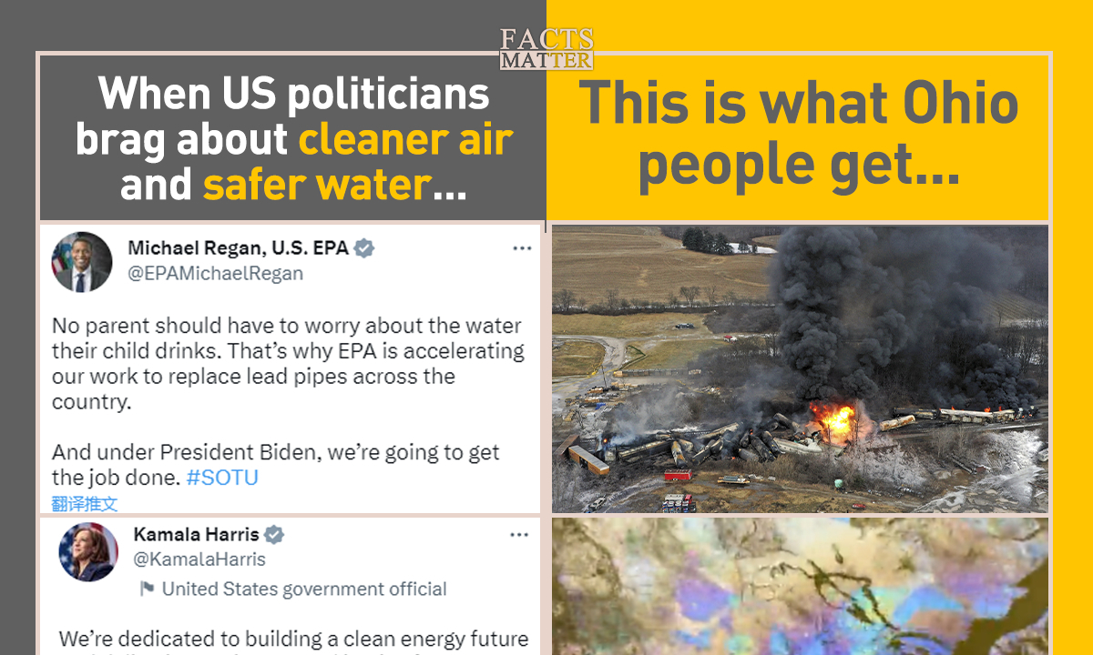 Editor's Note:The train derailment in East Palestine, Ohio of the US on February 3 that unleashed highly toxic chemicals into the air, water and earth have left local residents fearing for their lives and aggrieved about how the government and the rail company, Norfolk Southern, have handled the aftermath of the accident.