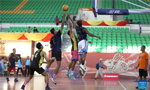 Chinese basketball player Cui Yongxi dunks against Iran in their 2023 FIBA World Cup Asian qualifying match in Hong Kong, China on February 26, 2023. China won 86-74. Team China had already secured a berth at the World Cup prior to the match. Photo: VCG