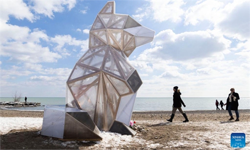 Tourists in Wuhan, Central China's Hubei Province, visit an exhibition themed "auspicious culture in embroidery" on March 2, 2023. The exhibition provides more than 60 pieces of embroidery with auspicious elements, presenting traditional Chinese culture including filial piety and goodwill. Photo: VCG