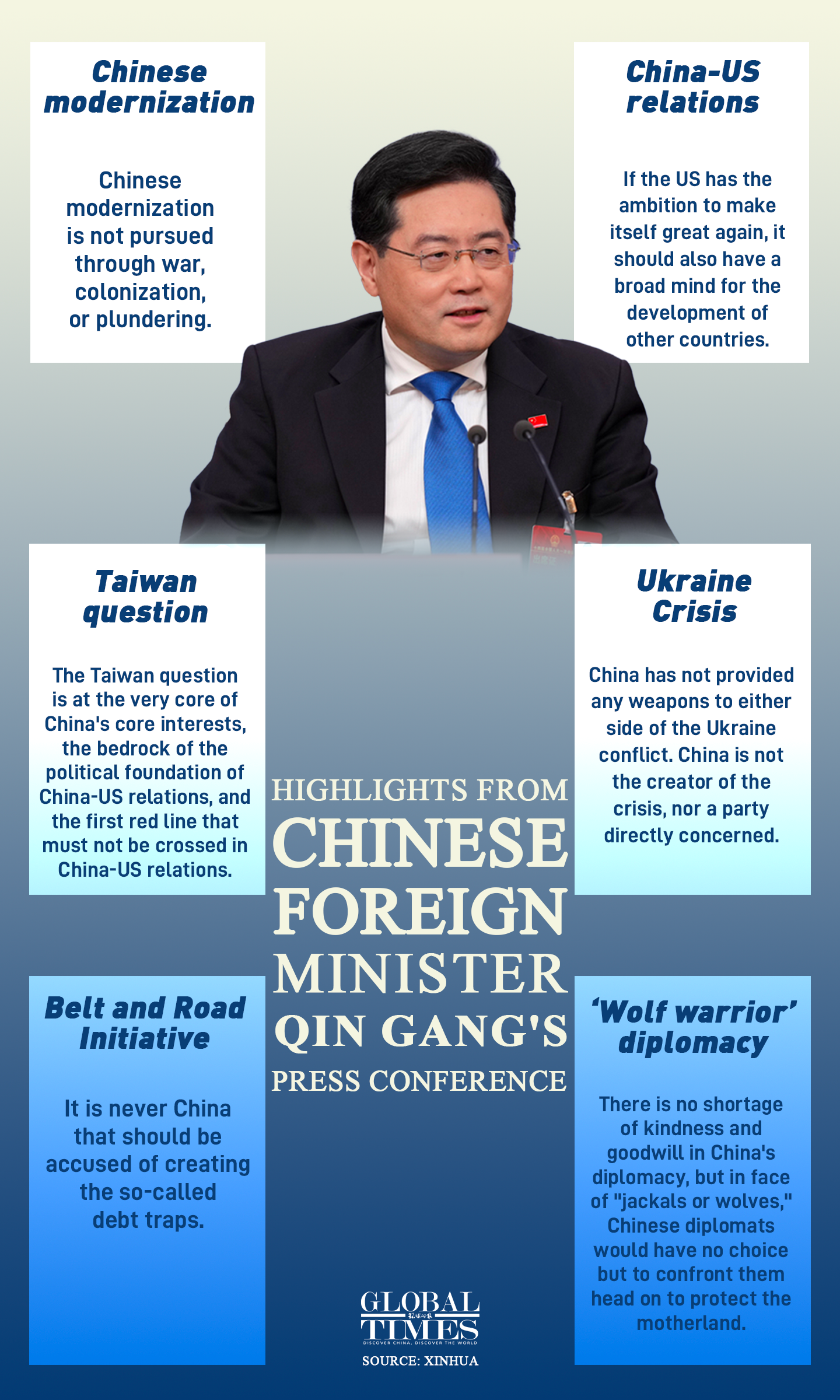 Highlights from Chinese Foreign Minister Qin Gang's press conference. Editor: Feng Qingyin/GT Graphic: Xu Zihe/GT