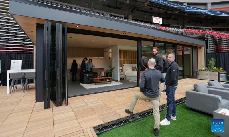 People view a modular home design at the BC Home and Garden Show in Vancouver, British Columbia, Canada, on March 16, 2023. The annual event featured over 300 exhibitors and expert presentations and will run from March 16 to March 19 at the BC Place stadium.(Photo: Xinhua)