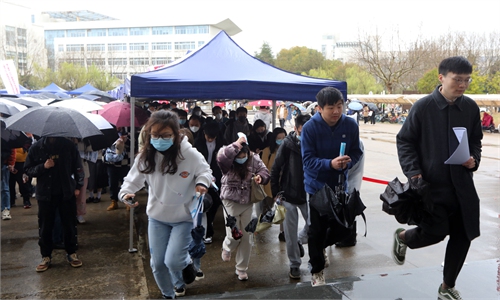 College graduates enter the job fair at Shanghai Polytechnic University on March 17, 2023. Photo: Chen Xia/GT