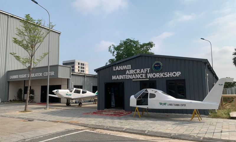 This photo taken on March 21, 2023 shows the Lanmei flight simulator center and the Lanmei aircraft maintenance workshop in Phnom Penh, Cambodia.(Photo: Xinhua)