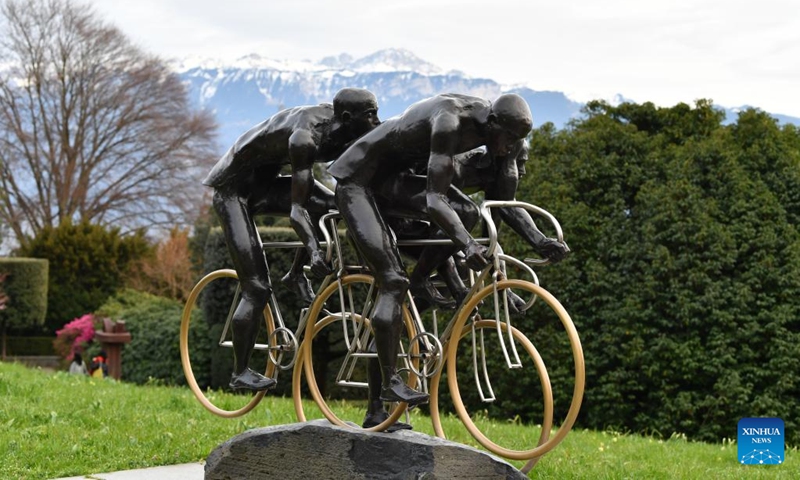 A sport-themed sculpture is seen at the International Olympic Museum in Lausanne, Switzerland, March 21, 2023. (Xinhua/Lian Yi)