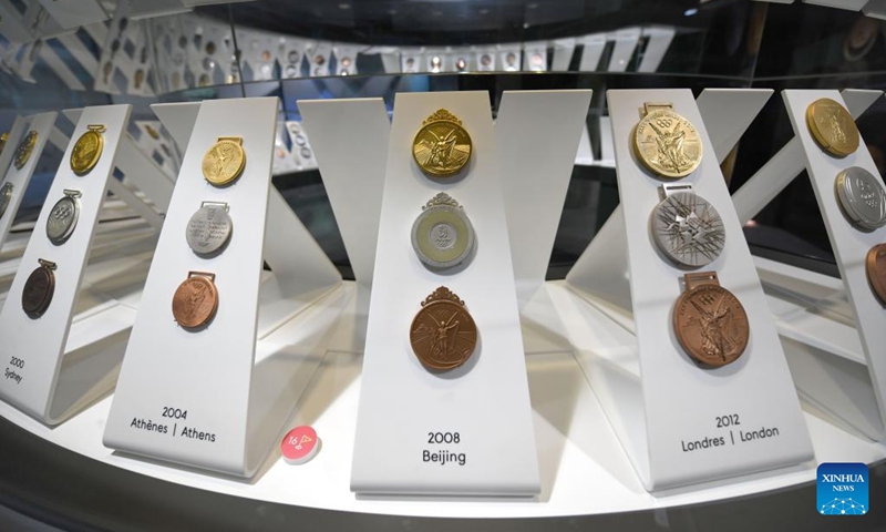 The Olympic medals are displayed at the International Olympic Museum in Lausanne, Switzerland, March 21, 2023. (Xinhua/Lian Yi)