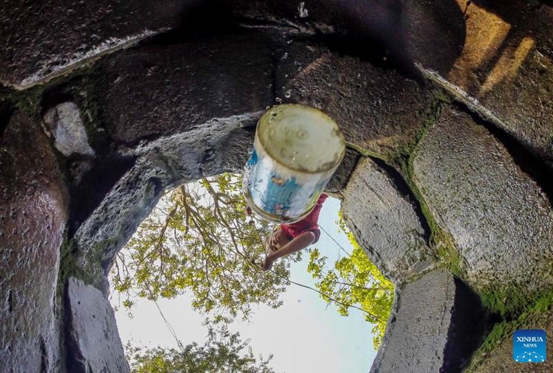 A resident fetches water from a well at a residential area on the occasion of World Water Day in Quezon City, the Philippines, March 22, 2023. (Xinhua/Rouelle Umali)