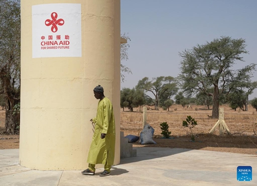Mamadou Dieng walks in the area of a well project in Tenefoul Toucouleur Village, Diourbel, Senegal, March 20, 2023. Mamadou Dieng, 40, an employee of the Chinese construction company CGCOC Group Senegal Branch, has been responsible for maintaining a Chinese-aided well in Tenefoul Toucouleur Village. Checking the machine's functions and filling the engine with diesel, Dieng's work may seem simple and tedious, but means a lot to the locals.(Photo: Xinhua)