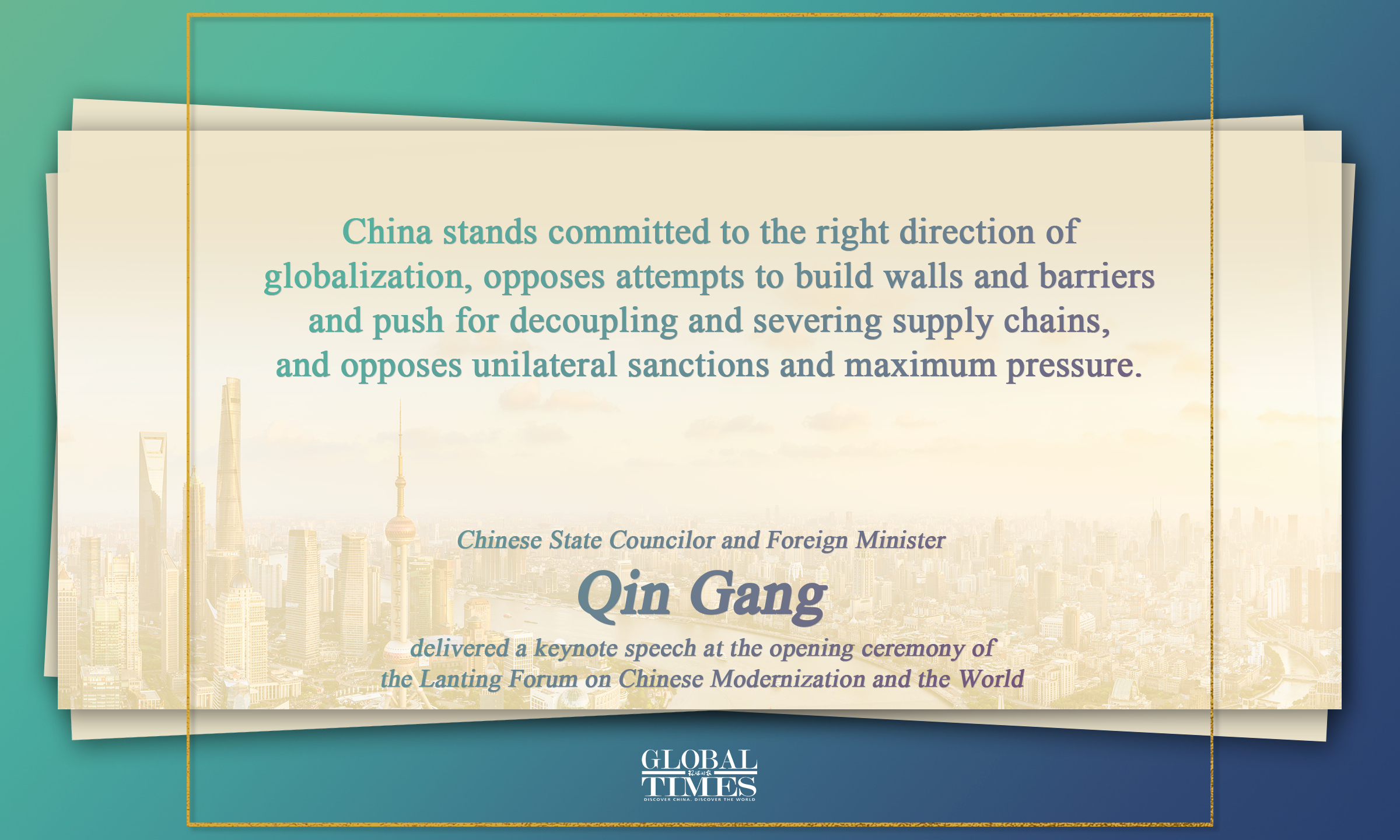 Highlights of State Councilor and Foreign Minister Qin Gang’s keynote speech at Lanting Forum. Graphic:GT
