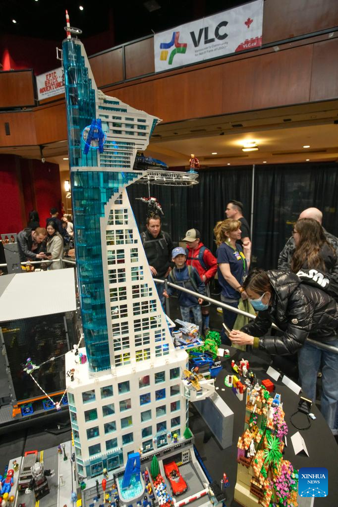 A LEGO installation is displayed at the BrickCan LEGO exhibition at the River Rock Theatre in Richmond, British Columbia, Canada, on April 22, 2023. Over 300 LEGO builders from around the world showcased their creations at BrickCan 2023, which was held here in Richmond between April 22 and 23. (Photo by Liang Sen/Xinhua)