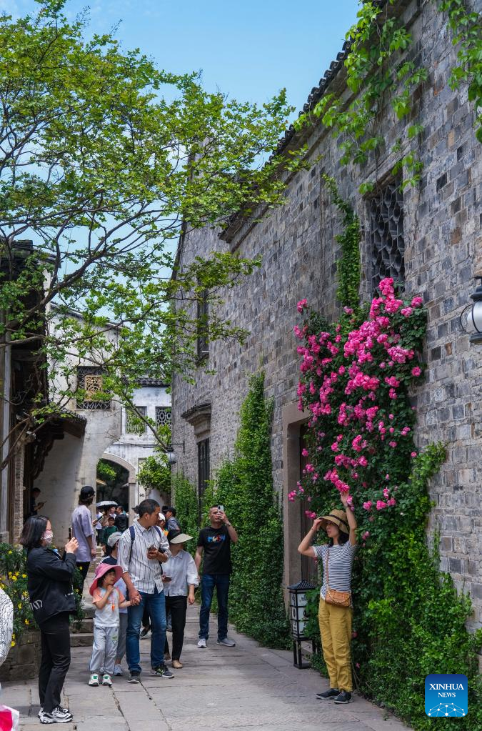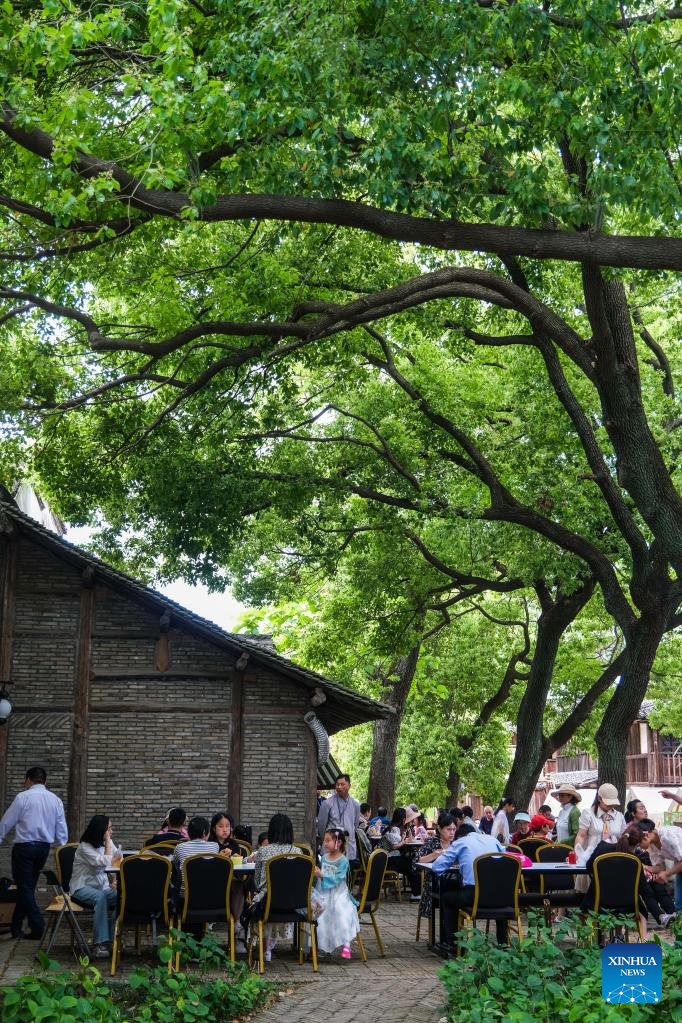 Tourists visit Puyuan Fashion Resort in Puyuan Town of Tongxiang City, east China's Zhejiang Province, May 2, 2023. (Xinhua/Xu Yu)