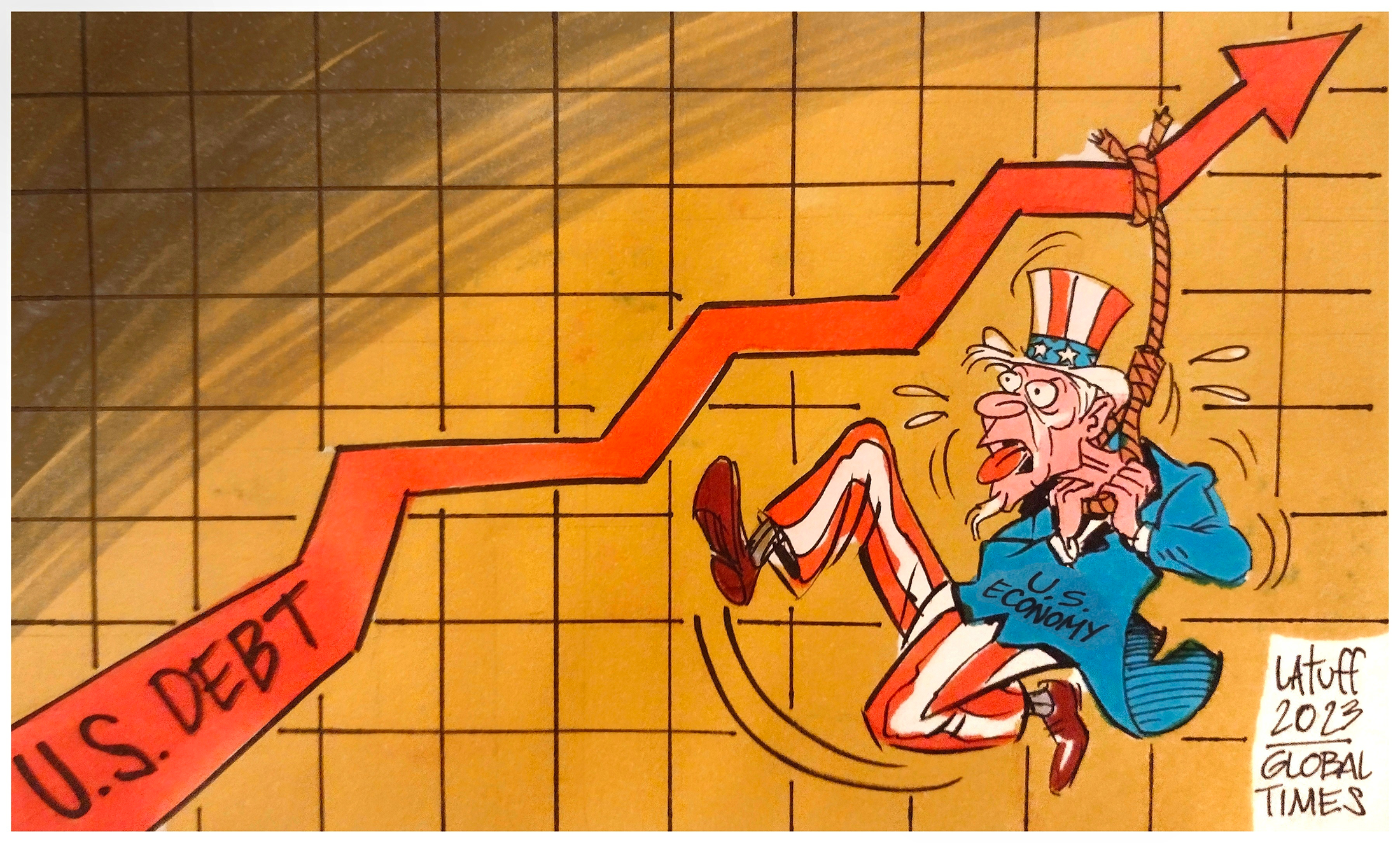 US choking on debt. Cartoon: Carlos Latuff