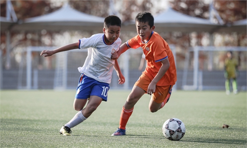 Son Jun-ho (center) of Shandong Taishan FC plays in Chinese Super Cup on April 8, 2023 in Hangzhou, East China's Zhejiang Province. Photo: VCG